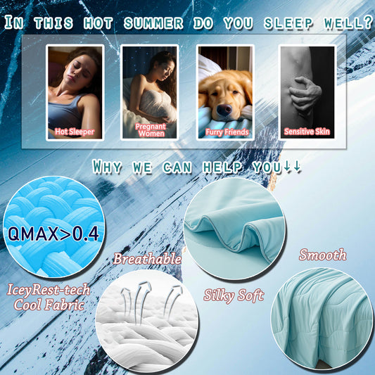 MorroMorn IceyRest Cooling Comforter for Hot Sleepers Night Sweats, Cooling Blankets Absorbs Body Heat to Keep Cool, Lightweight Blanket Summer Comforter All-Season Breathable Soft Silk Smooth…